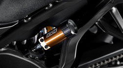 Nova preokrenuta prednja vilica marke KYB od 43 mm u potpunosti je redizajnirana i sada ima posebne prilagodnike za prigušivanje poskakivanja i kompresije na lijevoj i desnoj cijevi vilice. Svaka se može zasebno ugoditi, na desnoj cijevi prigušiti poskakivanje, a na lijevoj kompresiju, kako pri velikim brzinama tako i pri malim brzinama. Stražnji amortizer može se prilagoditi za predopterećenje, prigušivanje poskakivanja, prigušivanje kompresije i visinu vozača. Novi raspored pridonosi vrlo preciznom prigušenju, pružajući bolju povratnu informaciju sa staze ili površine ceste.
